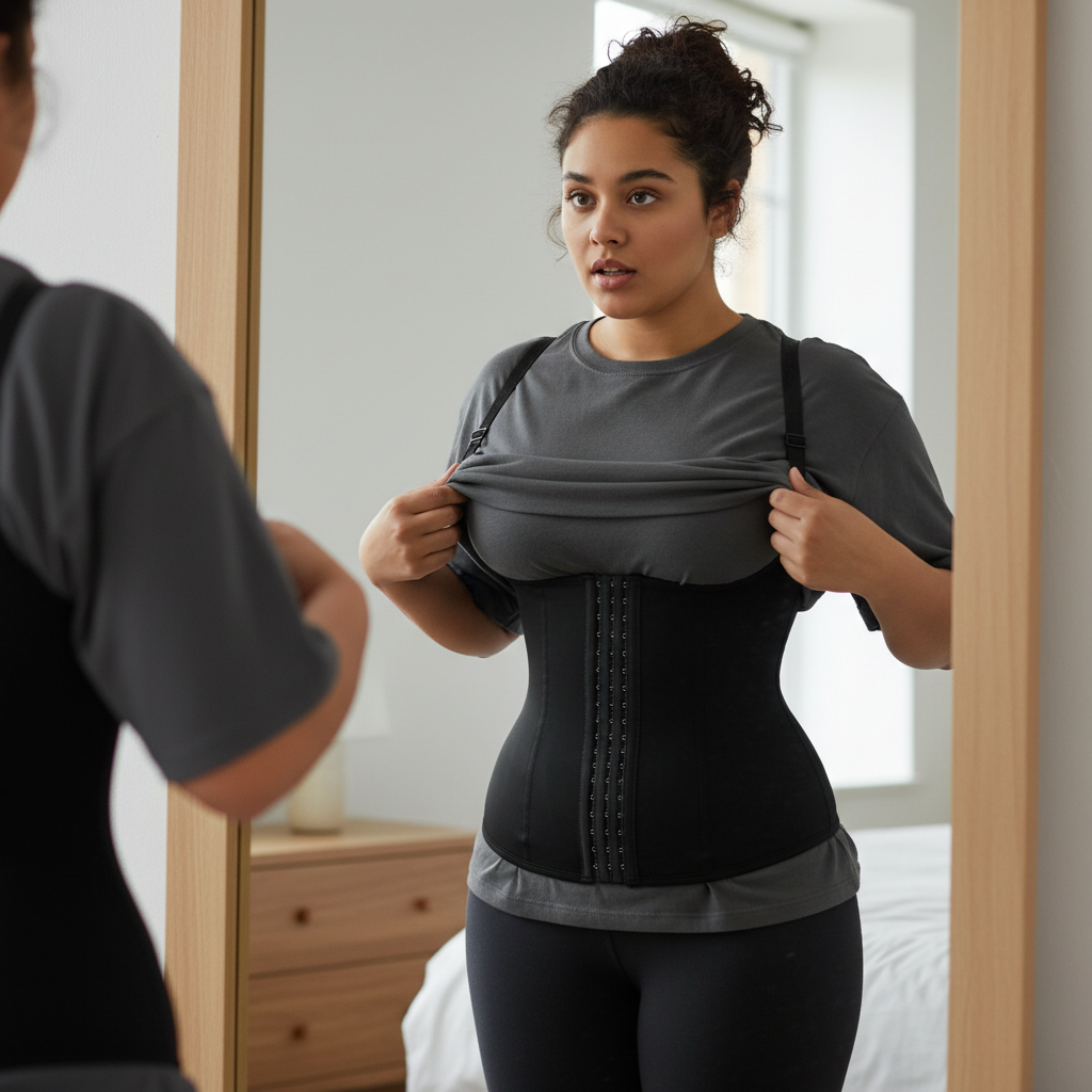 Ce corset gainant noir est conçu pour affiner la taille et offrir un maintien ferme et structuré. Grâce à sa double fermeture par zip et agrafes, il permet un ajustement précis selon votre morphologie. Sa conception robuste aide à lisser le ventre, soutenir le dos et améliorer la posture, tout en restant confortable au quotidien. Idéal pour être porté sous les vêtements ou lors de séances de sport doux, il devient un allié essentiel pour une silhouette plus harmonieuse.